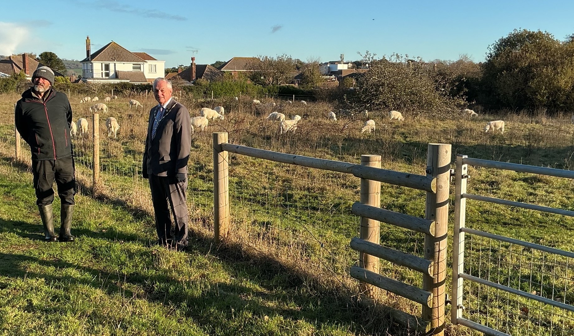 Lake Parish Council Chair, Paul Brading, officially ‘unveiled’ a new gate outside of Copse Mead Nature Reserve, and welcomed back over 90 easy keep sheep, who ‘share’ the mead with other Parishioners, before the land is flailed later in the year.